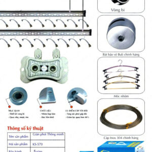 | Thanh phơi | Dài 1,8m – 2m – 3m x 2 thanh phơi, sơn tĩnh điện, thiết kế theo hình dầm cầu, cạnh hình tròn, thiết kế treo tối đa 80 -120 móc treo puần áo, có thể phơi trăn ga gối, đệm … |
